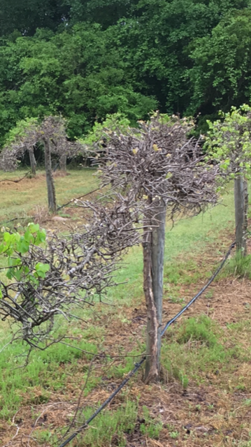 About 2 months ago I was on the phone with a muscadine grower in South Carolina. He had a very good crop the fall of 2018, but his vines had not put out this spring. The varieties he had planted are vigorous plants and rarely over-crop, so I was perplexed on why his vines failed to break bud. In our conversation I asked about fruit load, chemicals used during the season, fertilizer applications, and where the vines were being grown. I was trying to find a cause or better understanding of what could of caused the vines to die. Cold weather injury was a non issue since the winter had been mild, and the answers to all of my questions fell in line with normal vineyard management. I was running out of explanations and then I asked had he done any pruning on the vines.
